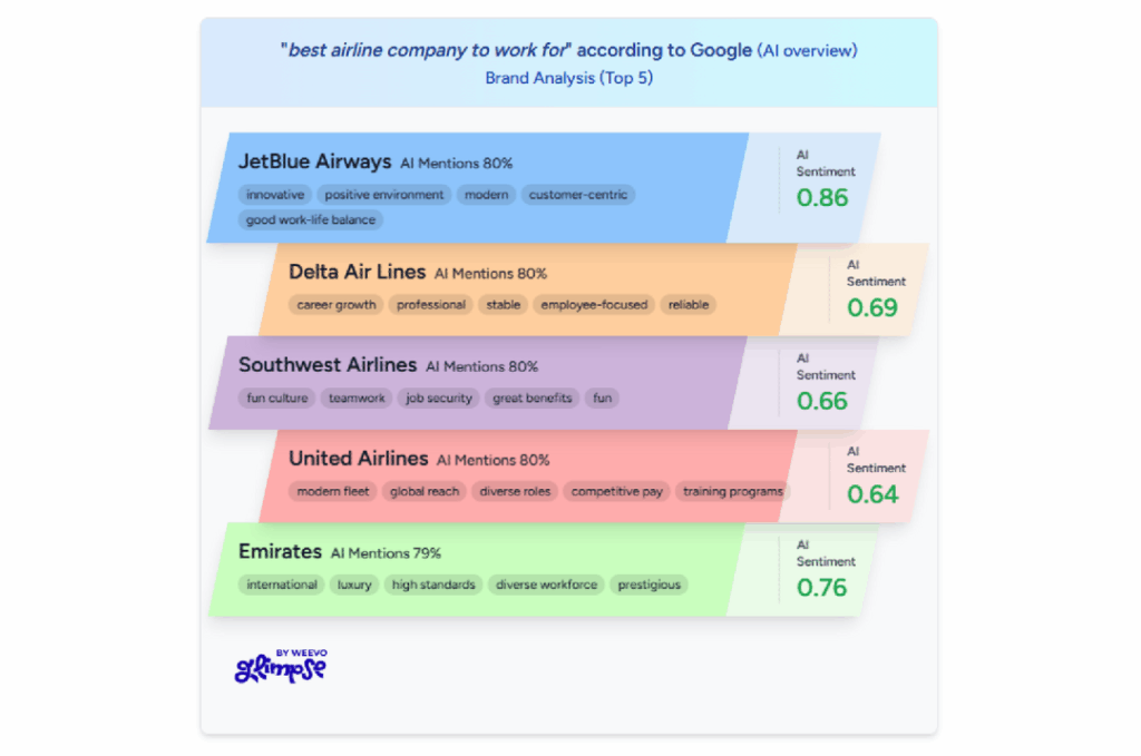 Due ricerche gemelle, due narrative diverse: l’analisi GLIMPSE by Weevo mostra come ChatGPT 5.1 e Google AI Mode raccontano in modo sorprendentemente diverso le compagnie aeree Introduzione Nel nuovo ecosistema della ricerca generativa, dove non è più l’utente a cercare ma l’IA a scegliere chi mostrare, abbiamo deciso di analizzare una domanda piuttosto particolare: “Come…