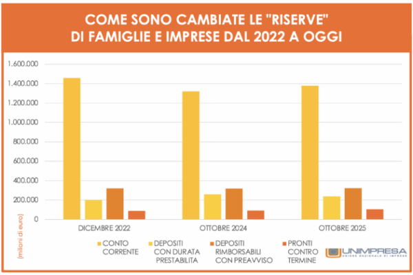 Report dell’associazione: la liquidità torna oltre 2.000 miliardi, il 67% è sui conti correnti.