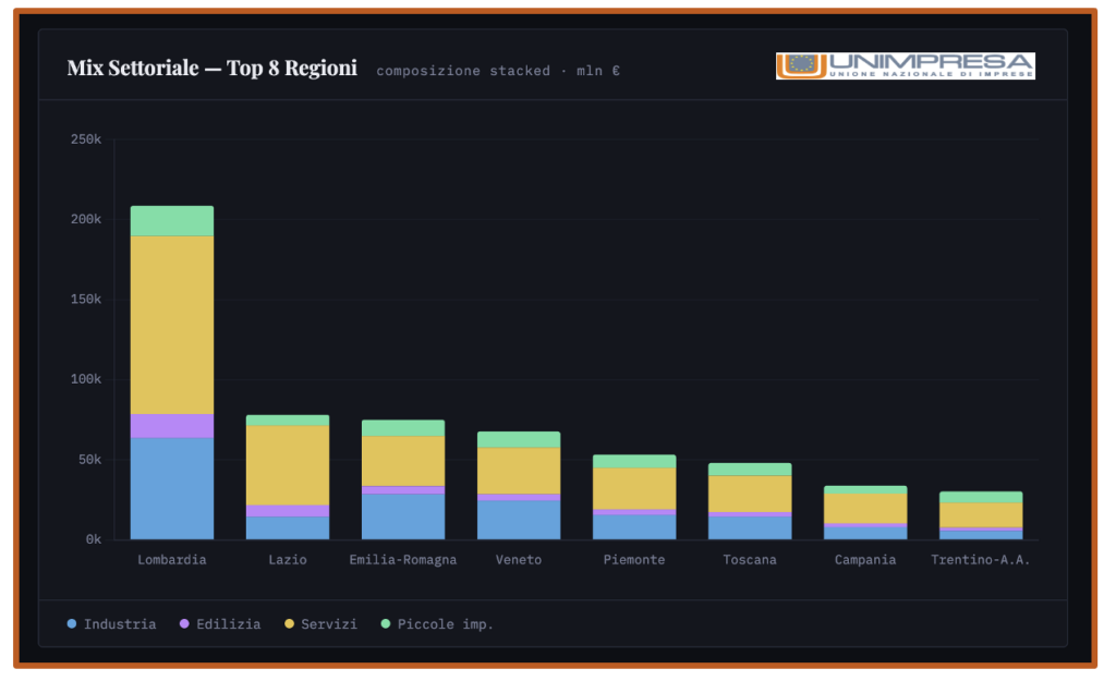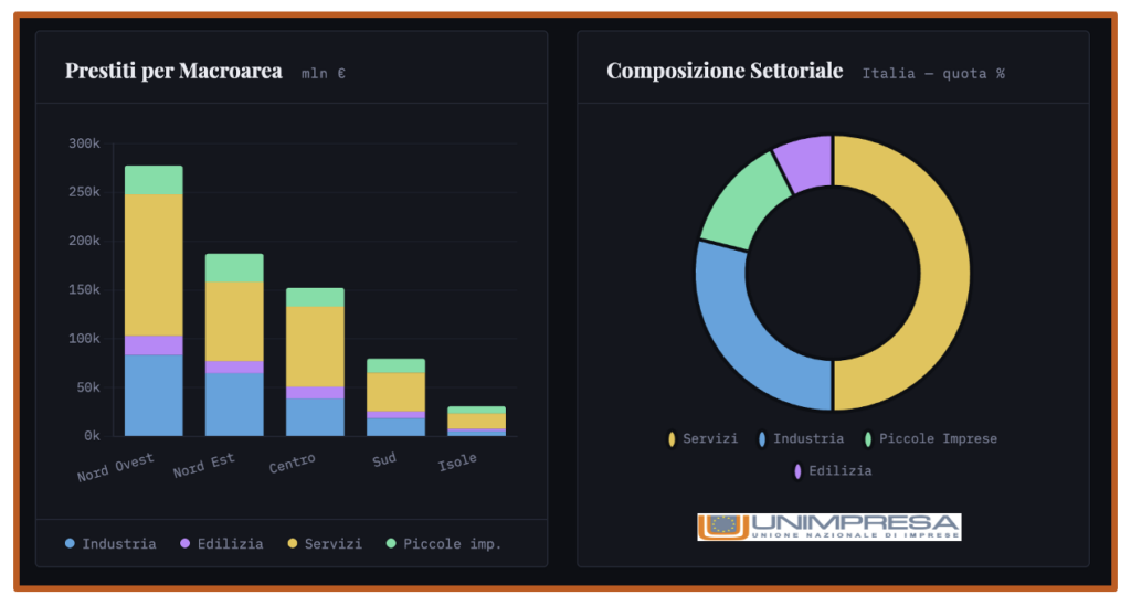 «Emerge, dai nostri dati, una forte polarizzazione geografica del credito: le regioni settentrionali, dove si concentra la parte più dinamica del sistema produttivo, continuano ad attrarre la quota predominante dei finanziamenti, mentre le regioni meridionali restano su livelli molto più bassi. Il divario appare particolarmente evidente se si considera che l’intero Mezzogiorno, con oltre venti milioni di abitanti e una vasta rete di imprese, riceve complessivamente meno credito di quanto venga erogato nella sola Lombardia. Un altro elemento rilevante riguarda il peso relativamente limitato dei finanziamenti destinati alle piccole imprese, che rappresentano la componente più diffusa dell’economia italiana. I 99,5 miliardi di prestiti a questa categoria di imprese corrispondono infatti a meno di un sesto del credito complessivo alle imprese, una quota che evidenzia le difficoltà di accesso al credito per una parte importante del tessuto produttivo. Anche sotto questo profilo emerge una significativa differenza territoriale: la maggior parte dei finanziamenti alle piccole imprese si concentra nelle regioni del Nord, mentre nelle regioni meridionali i volumi restano più contenuti. Osserviamo, insomma, l’immagine di un sistema creditizio ampio ma caratterizzato da forti squilibri territoriali e dimensionali, con il credito che tende a concentrarsi nelle aree economicamente più forti e nelle imprese di dimensioni maggiori, mentre il Mezzogiorno e le realtà imprenditoriali più piccole continuano a ricevere una quota relativamente limitata delle risorse finanziarie disponibili» commenta il vicepresidente di Unimpresa, Giuseppe Spadafora.
