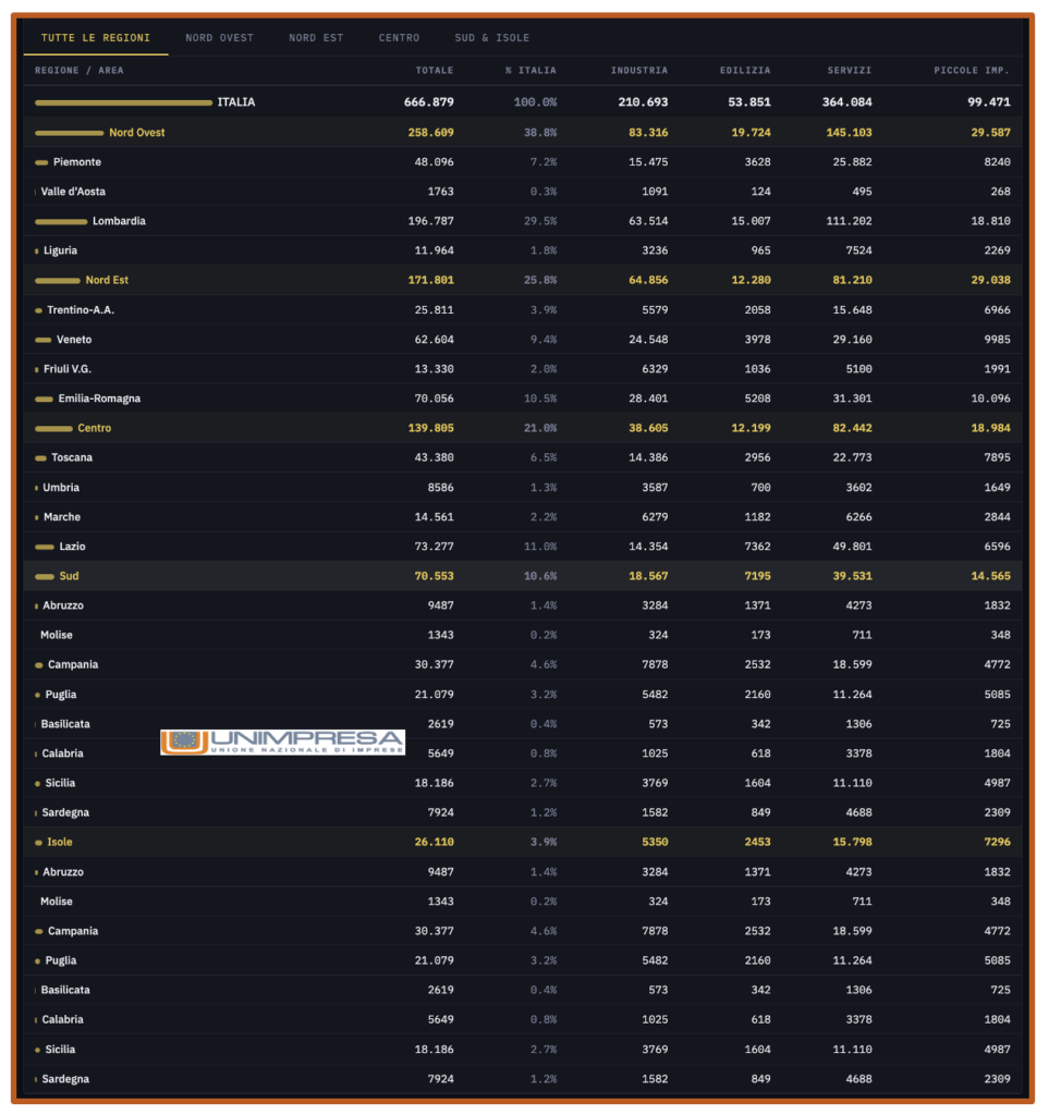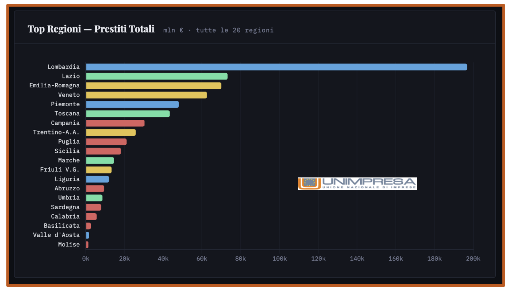 «Emerge, dai nostri dati, una forte polarizzazione geografica del credito: le regioni settentrionali, dove si concentra la parte più dinamica del sistema produttivo, continuano ad attrarre la quota predominante dei finanziamenti, mentre le regioni meridionali restano su livelli molto più bassi. Il divario appare particolarmente evidente se si considera che l’intero Mezzogiorno, con oltre venti milioni di abitanti e una vasta rete di imprese, riceve complessivamente meno credito di quanto venga erogato nella sola Lombardia. Un altro elemento rilevante riguarda il peso relativamente limitato dei finanziamenti destinati alle piccole imprese, che rappresentano la componente più diffusa dell’economia italiana. I 99,5 miliardi di prestiti a questa categoria di imprese corrispondono infatti a meno di un sesto del credito complessivo alle imprese, una quota che evidenzia le difficoltà di accesso al credito per una parte importante del tessuto produttivo. Anche sotto questo profilo emerge una significativa differenza territoriale: la maggior parte dei finanziamenti alle piccole imprese si concentra nelle regioni del Nord, mentre nelle regioni meridionali i volumi restano più contenuti. Osserviamo, insomma, l’immagine di un sistema creditizio ampio ma caratterizzato da forti squilibri territoriali e dimensionali, con il credito che tende a concentrarsi nelle aree economicamente più forti e nelle imprese di dimensioni maggiori, mentre il Mezzogiorno e le realtà imprenditoriali più piccole continuano a ricevere una quota relativamente limitata delle risorse finanziarie disponibili» commenta il vicepresidente di Unimpresa, Giuseppe Spadafora.