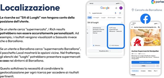 - Localizzazione: Le ricerche spesso non sono contestualizzate, il che complica il processo di ricerca di informazioni pertinenti, adattate alla posizione e alle preferenze specifiche degli utenti.