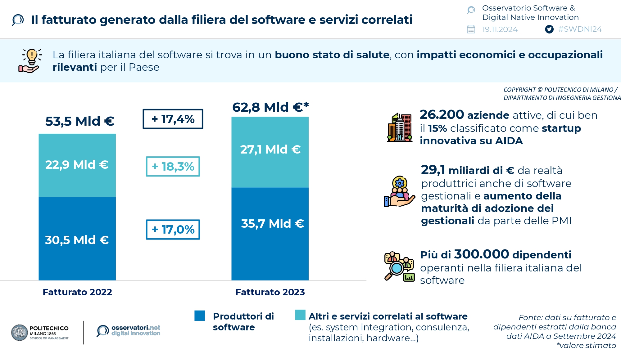 *L’Edizione 2024 dell’Osservatorio Software & Digital Native Innovation della School of Management del Politecnico di Milano è realizzata in collaborazione con AssoSoftware, con il patrocinio del Ministero dell’Economia e delle Finanze e con il supporto di Entando, Amazon Web Services (AWS), Aruba Cloud, Open Source Italia, Storm Reply, Wolters Kluwer Tax & Accounting Italia, Zucchetti, Dylog, InnoTech S.r.l.