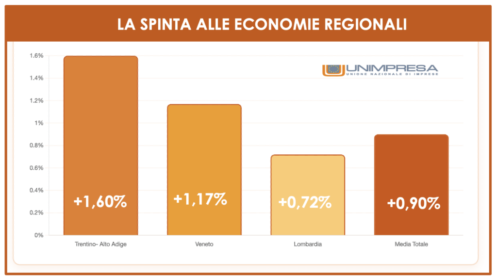 Il Trentino-Alto Adige, con 800 milioni di euro (14% del totale), registra l’impatto relativo più significativo: 1,60% del PIL regionale, stimato in 50 miliardi.