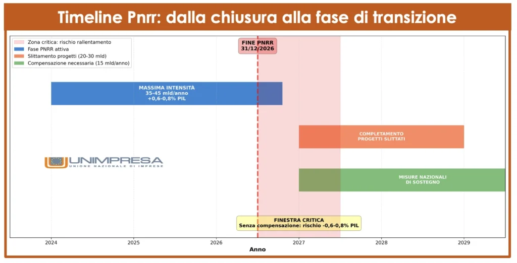 In termini concreti, una parte dei cantieri, dei contratti e degli stati di avanzamento lavori previsti nell’ultimo anno del Piano verrà completata o finanziata negli esercizi successivi, con un trascinamento di pagamenti e investimenti sul 2027 e, in alcuni casi, oltre. Questo significa che il flusso di risorse verso imprese, enti locali e filiere produttive non si azzererà improvvisamente il 31 dicembre 2026, ma si ridurrà gradualmente. Tuttavia, l’attenuazione non equivale a neutralizzazione.